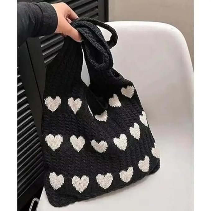 At the heart of this tote bag—literally—is its enchanting design. The delicately knitted heart pattern adds a romantic and sweet touch, making it a unique accessory that stands out from ordinary tote bags. Each stitch is carefully crafted to bring out the beauty of the design, ensuring you carry not just a bag but a piece of art that reflects love and elegance. This charming detail makes it ideal for anyone who wants to showcase their personality while keeping things stylish and practical.