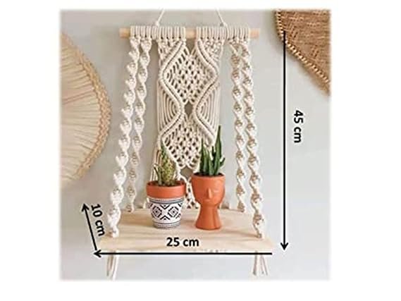 This macrame shelf is carefully designed in a medium size, making it both compact and spacious. With a height of 22 inches, width of 10 inches, and depth of 5 inches, it offers the perfect dimensions to hold 1 or 2 pots of 5–6 inches in diameter. Whether you want to showcase lush green succulents, candles, or your favorite decorative items, this shelf provides the ideal space to display them gracefully.